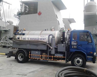 Utilisation of vacuum truck for gray & black water tank cleaning and bilges cleaning onboard HMCS Winnipeg.